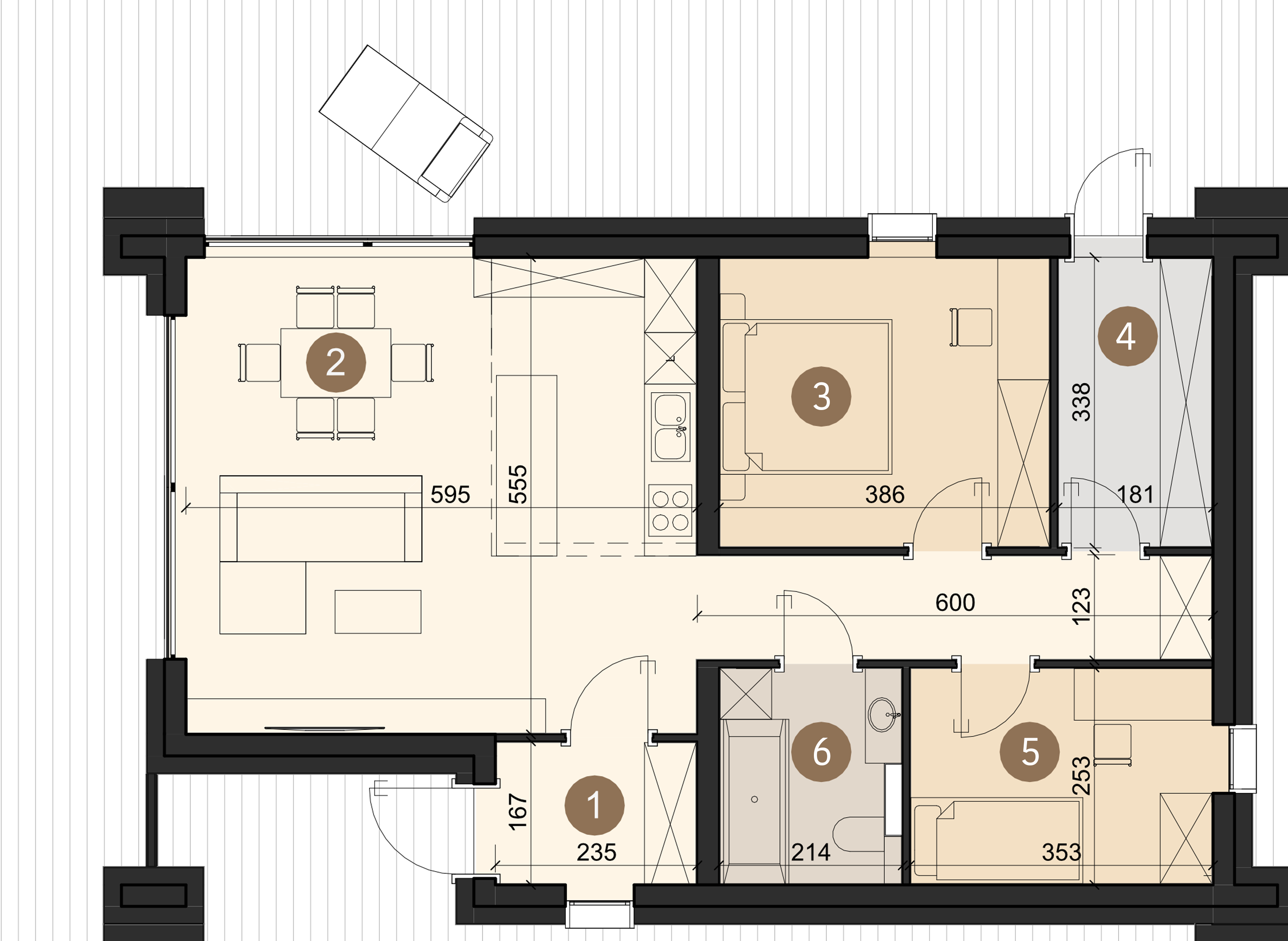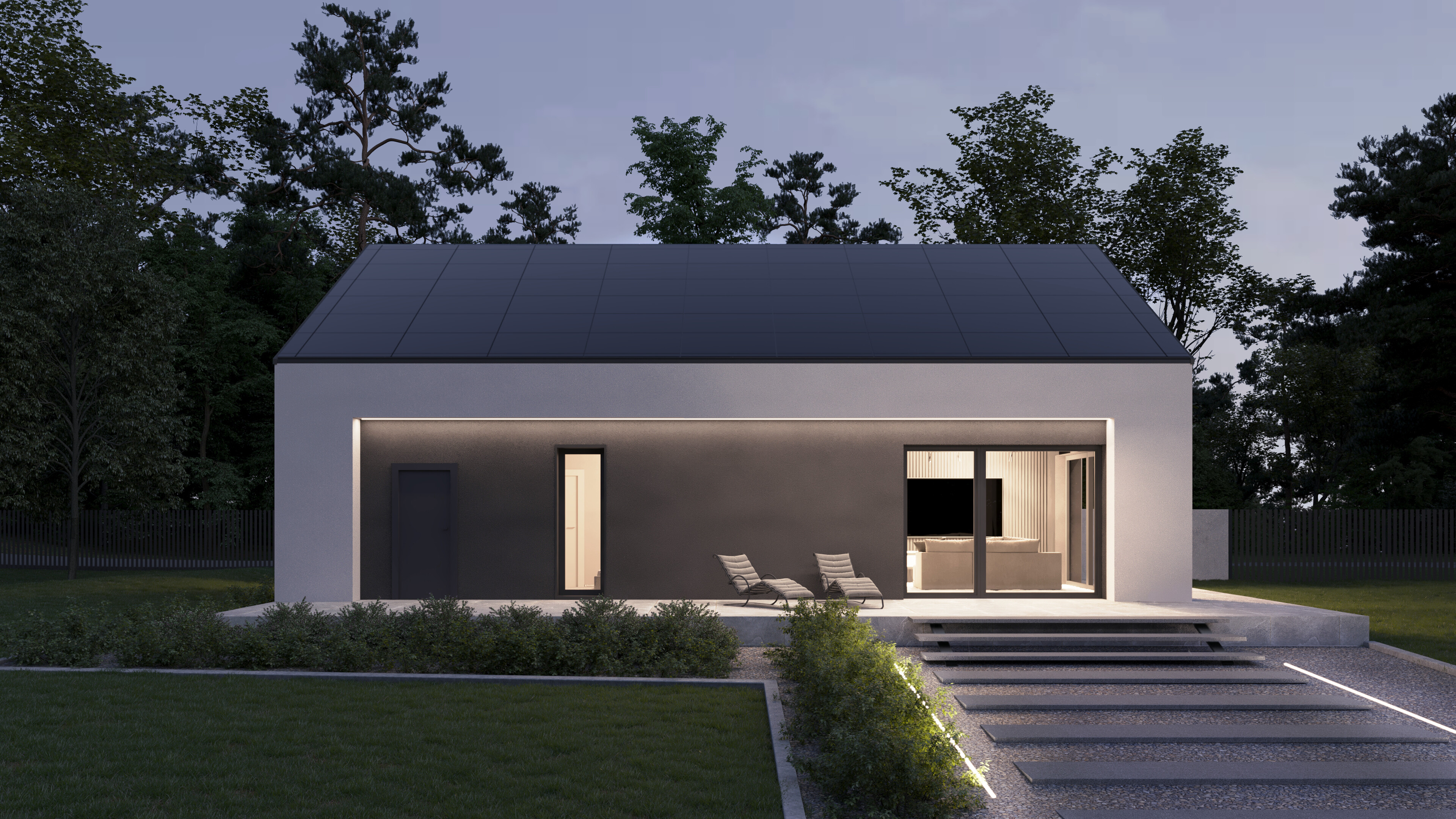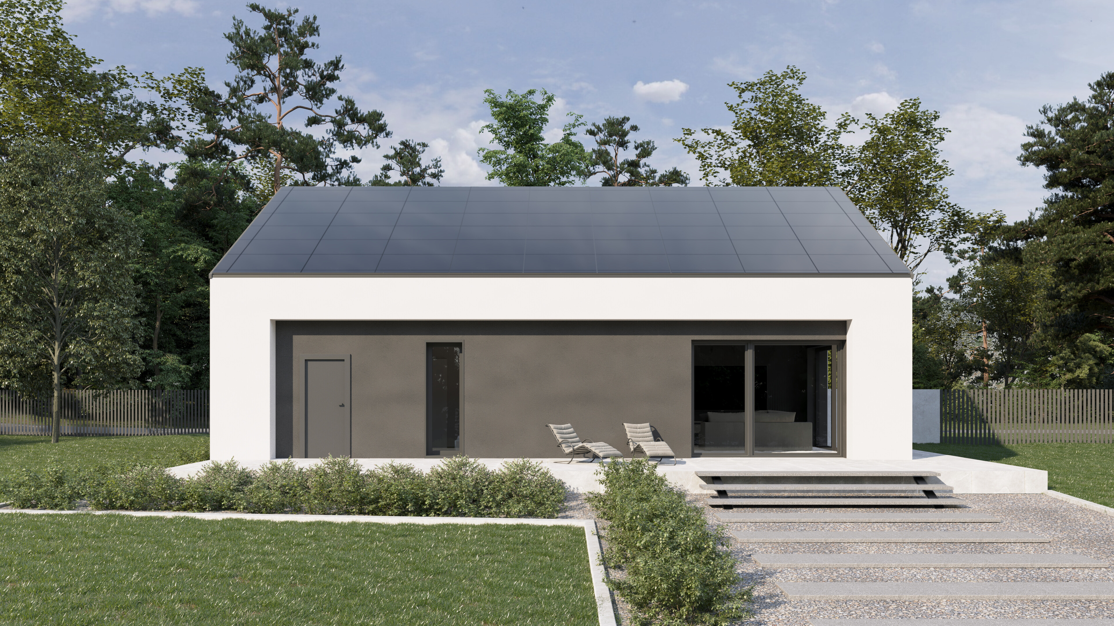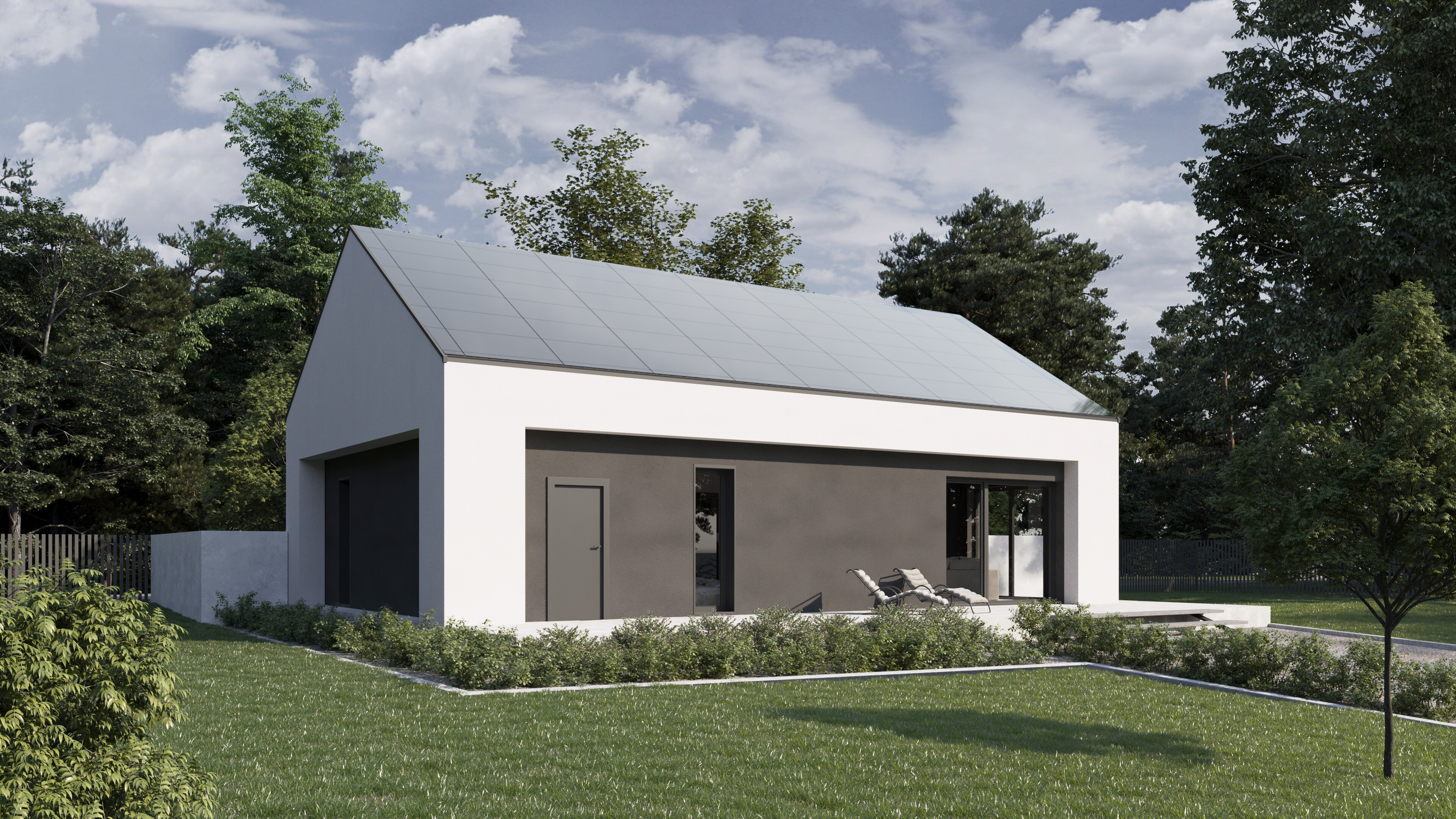 Es una casa cómoda para solteros, una primera casa para familias jóvenes, parejas maduras sin hijos, y para quienes valoran los espacios más pequeños. La casa ofrece, como todos los proyectos de la colección DEX, grandes ventanales en un espacioso y confortable salón conectado con la cocina, con salida al jardín, además de un baño y 2 dormitorios (o un dormitorio y una oficina). Todo esto en un diseño funcional que garantiza soluciones prácticas para las necesidades cotidianas de los residentes. Gracias a su diseño universal, puede adaptarse a la mayoría de los terrenos, asegurando un acceso fácil y seguro a cada habitación.