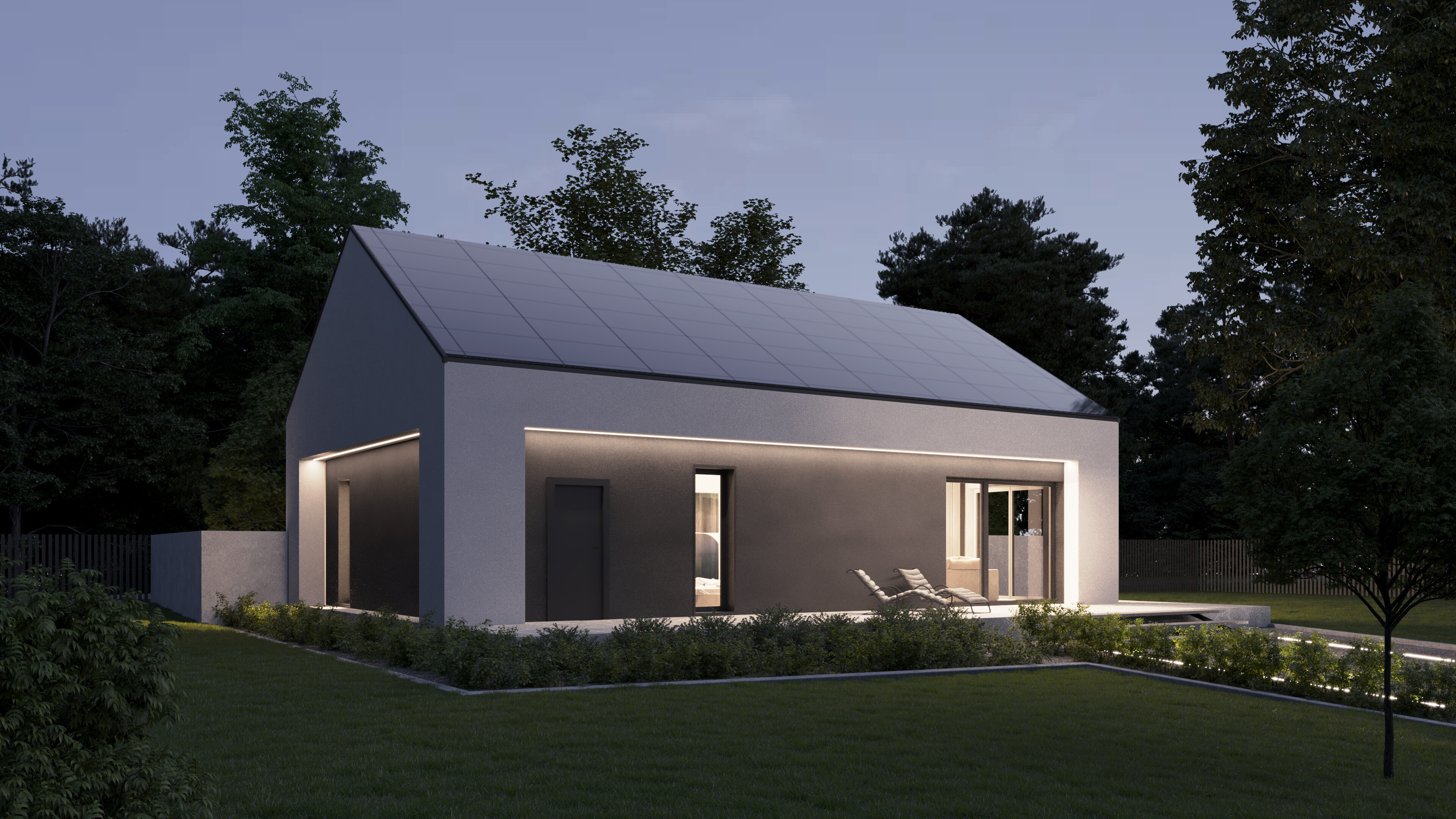 Combina comodidad y sostenibilidad. Diseñado con tecnologías como techo solar, bomba de calor y calefacción por suelo radiante, cumpliendo las estrictas normativas de emisiones cero y bajos costos energéticos de la UE.